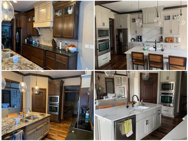 We offer staining and painting services for your cabinets. Your cabinet doors will be removed and finished off site, and the cabinet boxes will be finished in place. Your cabinets will be sprayed with a high quality and durable finish. We have a negative air system which allows us to minimize odor and dust for your comfort. We offer cabinet door and hardware replacement upon request.